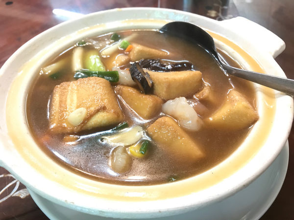 這份糧園豆腐份量就蠻多的!一整大概有七八塊豆腐在裡面,如果倒上一碗白飯進去,就變成豆腐鍋了耶!味道真的超實在!因為豆腐有鮮煎過,豆腐香氣超濃~