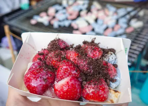 烤好之後的麻糬就可再來選擇自己喜愛的淋醬。