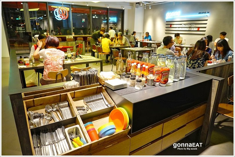 ▼自助區,像是開水、餐具、調味料、餐巾紙等通通都可以視個人需求取用~這裡連兒童餐具都有準備,所以帶小朋友來也沒問題!