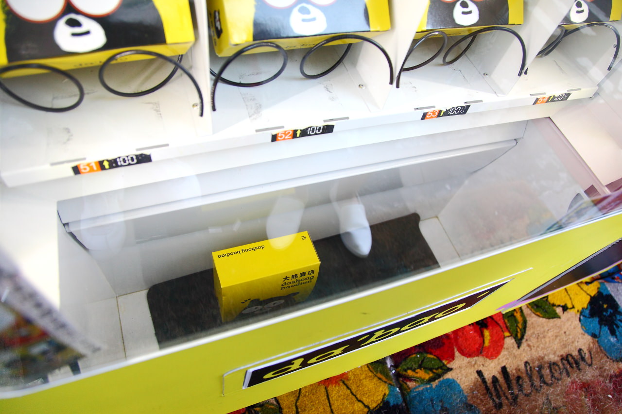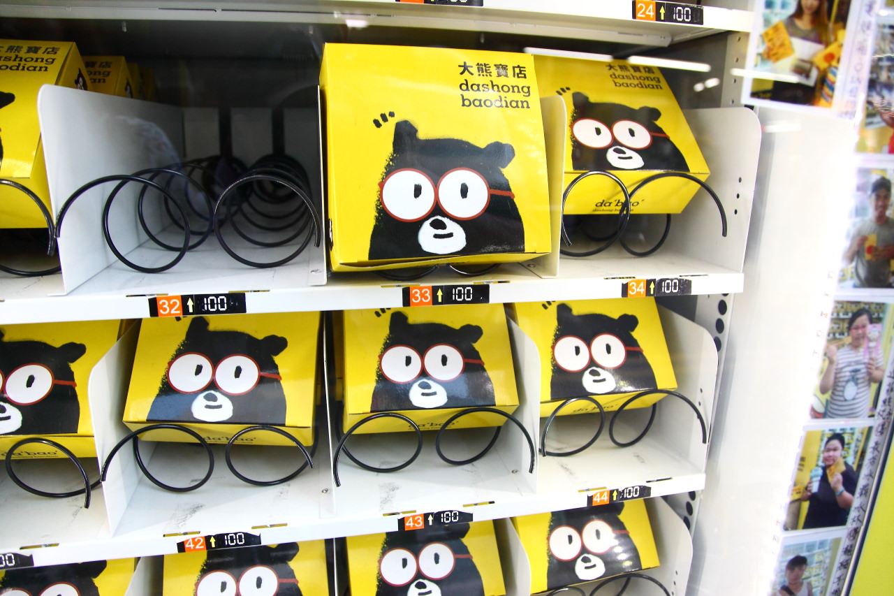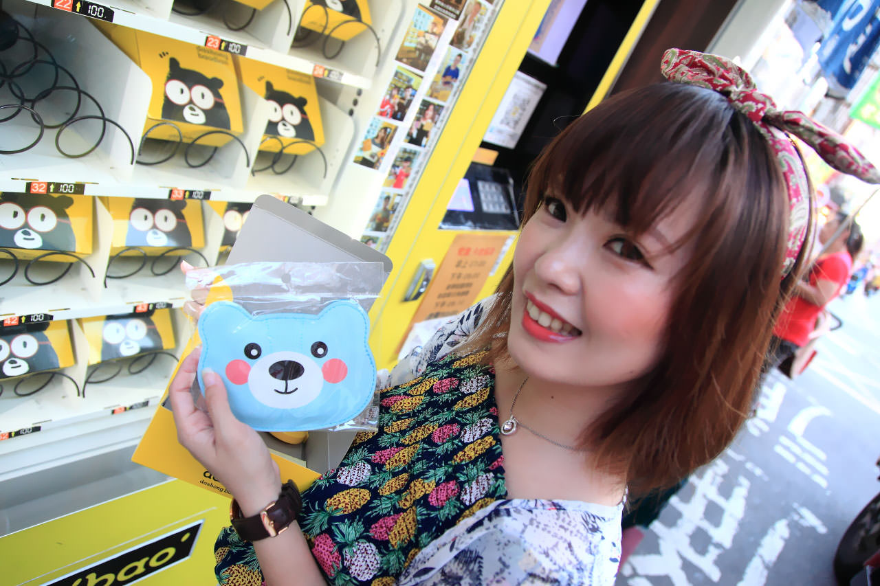 亮黃色大熊寶店百元販賣機遠遠看就相當顯眼,在中原也有其他百元販賣機,但人氣都沒有像大熊寶店那麼高,無時無刻這邊圍繞著挖寶的人潮,咬咬&151之前也曾經在台中投過一次,獎品爛到翻白眼,我記得是塑膠做的自拍鏡,抽到根本可以直接扔掉,看新聞聽說還有一些百元販賣機甚至還有麥香綠茶><