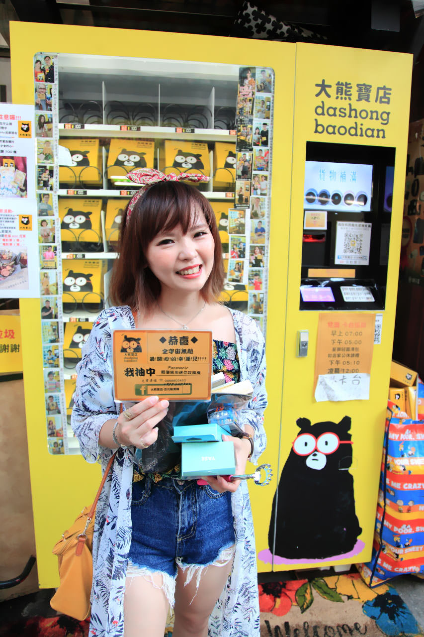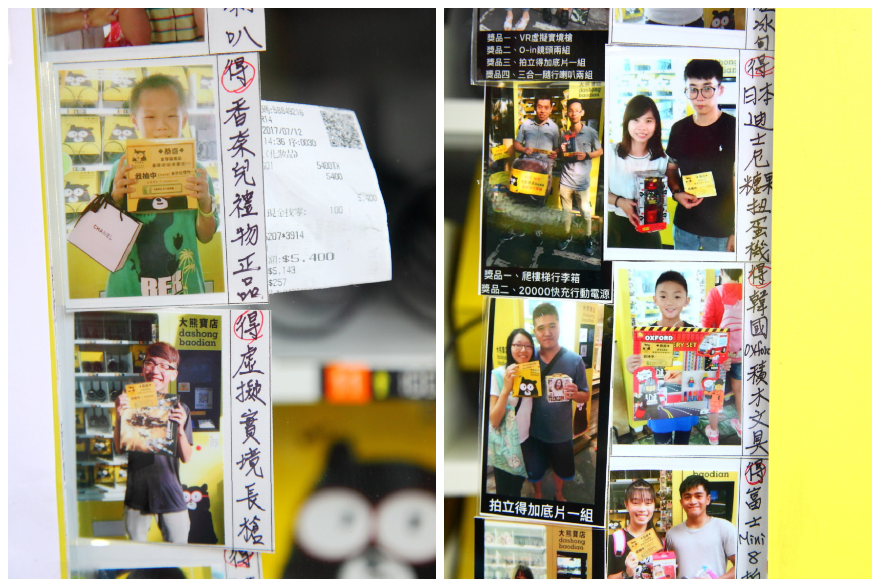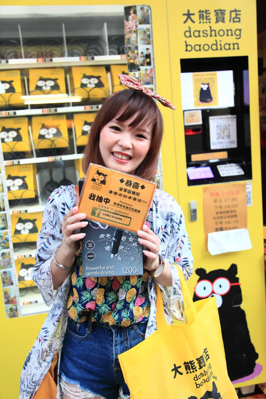 咬咬&151站在販賣機旁觀察了一陣子,雖然沒有看到大獎出現,但其實獎品都很不錯耶!每個人抽到都是笑笑地離開,還有許多外面少見的創意小物呢,大熊寶店販賣機旁有許多抽中大獎的照片,獎品還蠻多元的,有chanel化妝品、迪士尼的達菲商品、立可拍甚至還有人抽到超高檔的空拍機,會不會太好運了!真的是百元就能實現夢想!(咬咬超想要一台空拍機的),另外大熊寶店不定時會舉辦加碼活動,像情人節就加碼送電影票跟乾燥花唷
