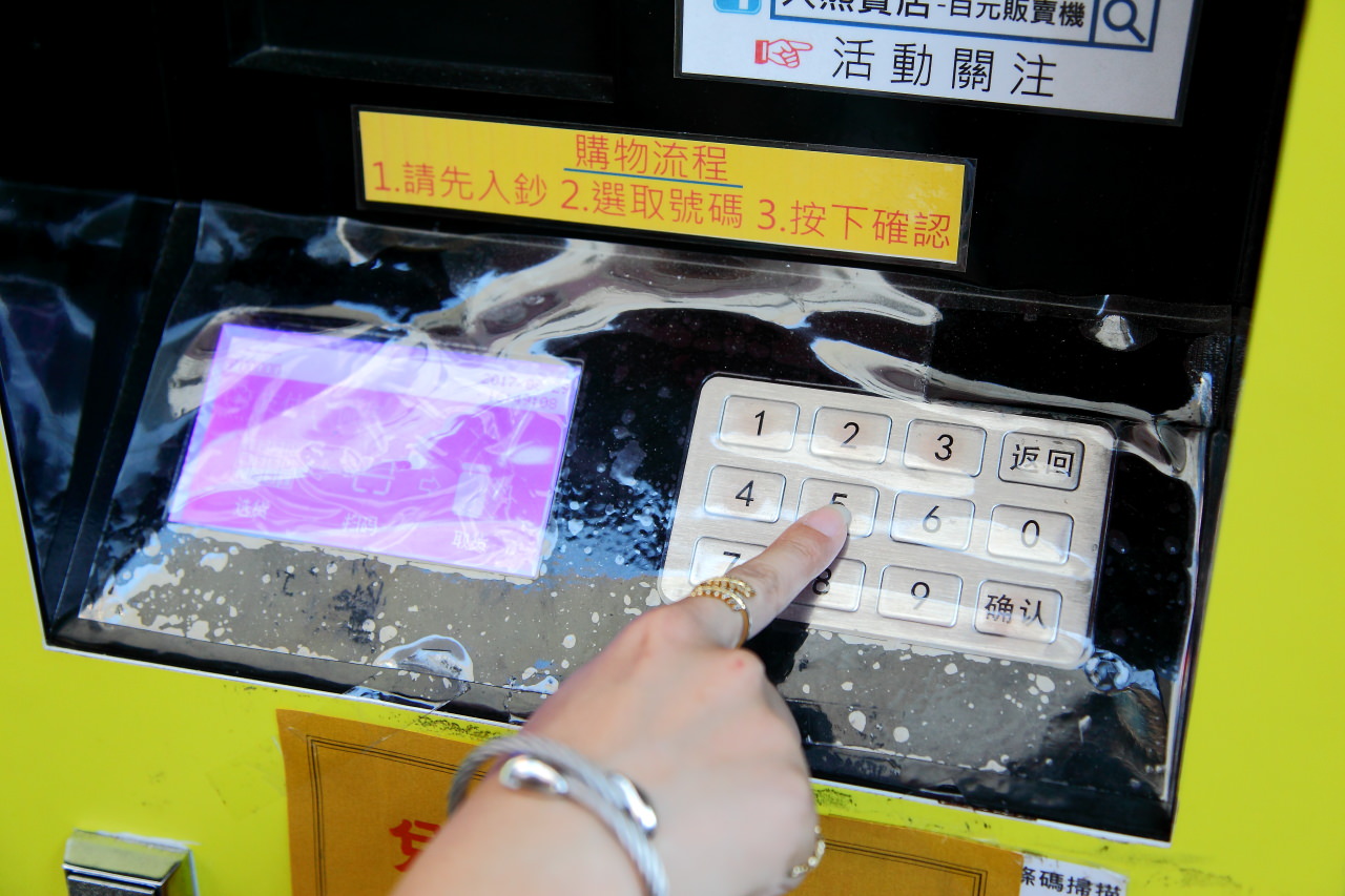 端詳了許久,決定出手了!希望第一個就能抽到大獎,來個好彩頭!抽獎的方法也很簡單,把一百元放進旁邊的投錢口,接著就按旁邊的鍵盤輸入你想要的寶盒號碼