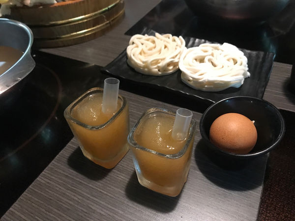 小象本來以為點兩份鍋物就只有兩份主食,所以還另外加點了一份烏龍麵,結果每盤菜盤都有一綑烏龍麵在,所以我們總共有了五份主食,變得有點太多了XD