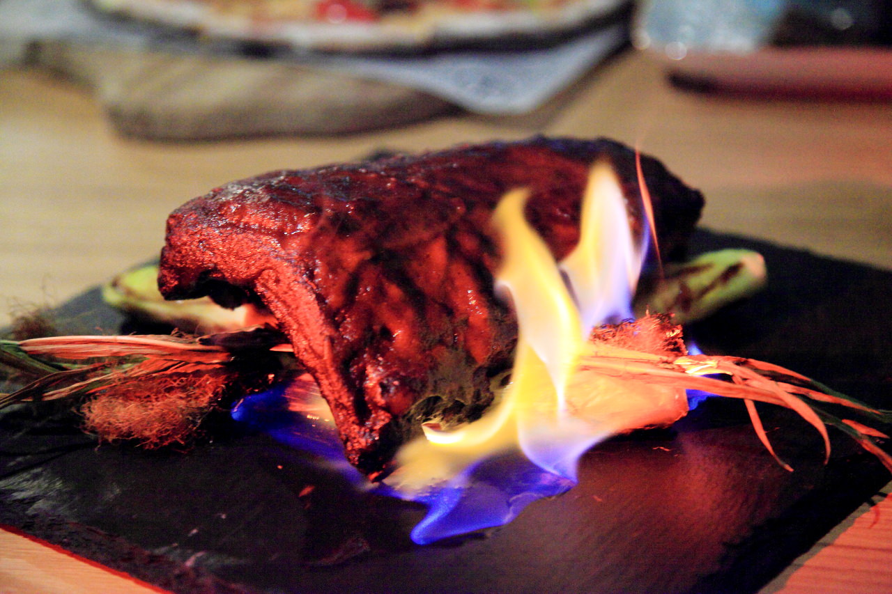 身為中保集團棧系列的第二間店,延續一店棧直火廚房炭烤精神,將玩火的概念翻轉,火燒豬肋排上桌時還會點火燒烤,創視覺、味覺、嗅覺的雙重享受!