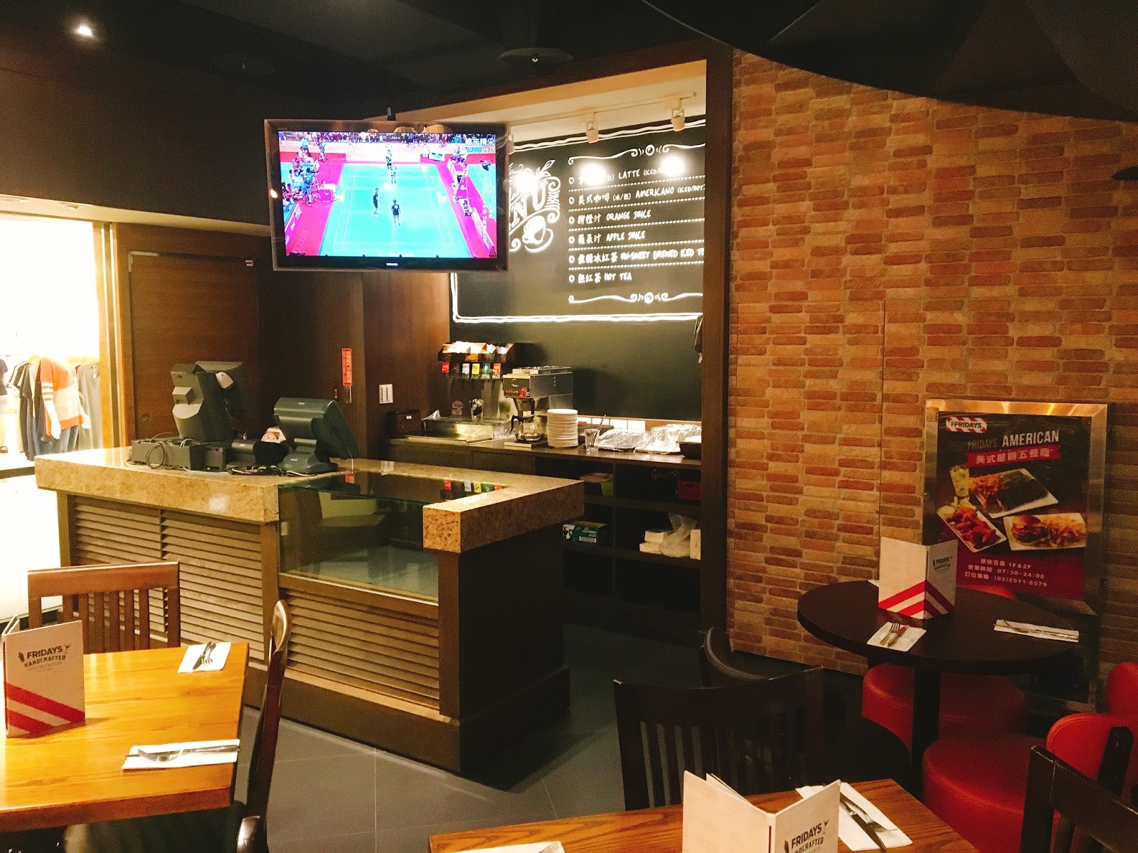 T.G.I.Friday's林森店在欣欣百貨內,其實非常好找,店內環境也真的不錯,剛好最近有世大運,還可以邊吃邊看比賽,對我這運動迷來說太棒了,上菜速度其實蠻快的,反而是我們因為人太多點菜點很久,害服務生一直等我們,這點很不好意思之外,其他方面都不錯!我其實沒有很愛美式餐廳,因為感覺裝潢跟菜色差異不大,沒有不好吃但就是不是我優先會選擇的類型,不過這次聚餐倒是讓我有改觀一點,或許下次朋友聚餐還會吃這個~喂!!!