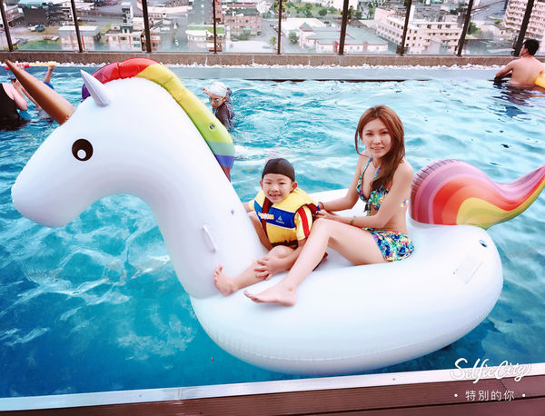 旅館內設施有游泳池、展望台、書櫃、健身房、餐廳、...光泳池就夠我們玩的了