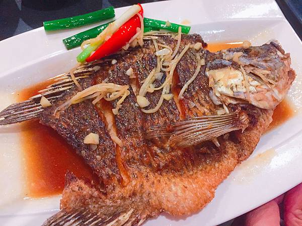 紅燒醬油味簡單不會太重 吳郭魚都有事先全部炸過 只是不知為何我這隻吳郭魚的尾巴不見了 別桌還有尾巴