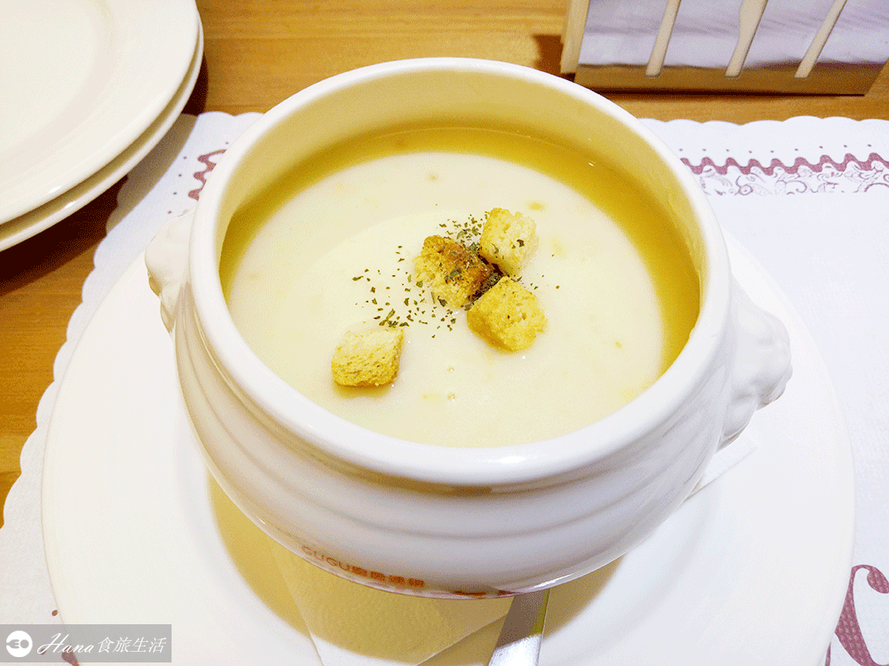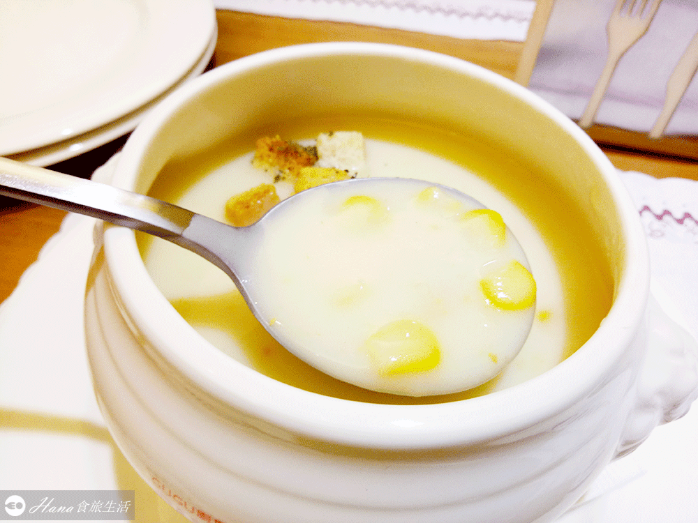 ▲點義大利麵附的主廚玉米濃湯,