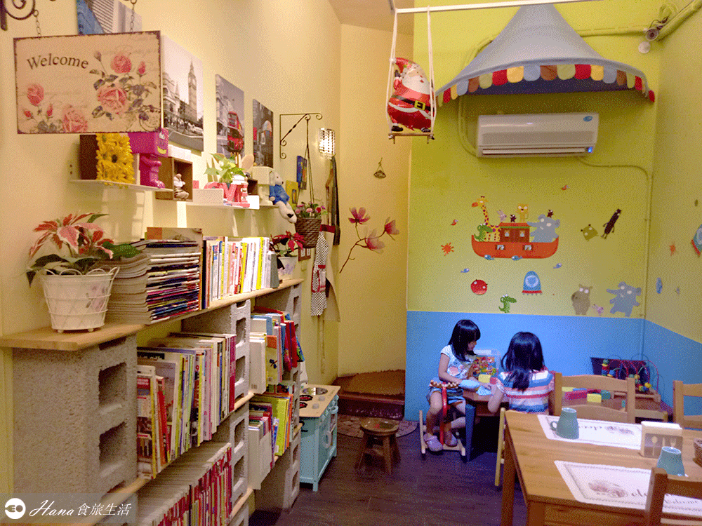 ▲店裡比較特別的空間是還有小孩的玩樂區以及書櫃,