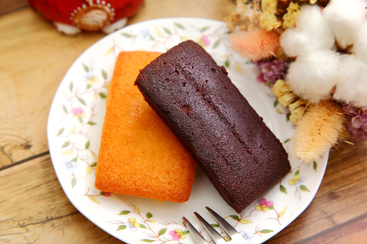 費南雪金磚是將發酵奶油以高溫加熱至微焦的金黃色,並加入大量的杏仁粉混合,在焙烤過後有著濃烈焦香奶油及杏仁香,杏仁的香味突出、口感濕潤又有點綿密,費南雪巧克力金磚則是再另外加入頂級可可粉,多了份苦甜的口感香氣,更有味覺深度