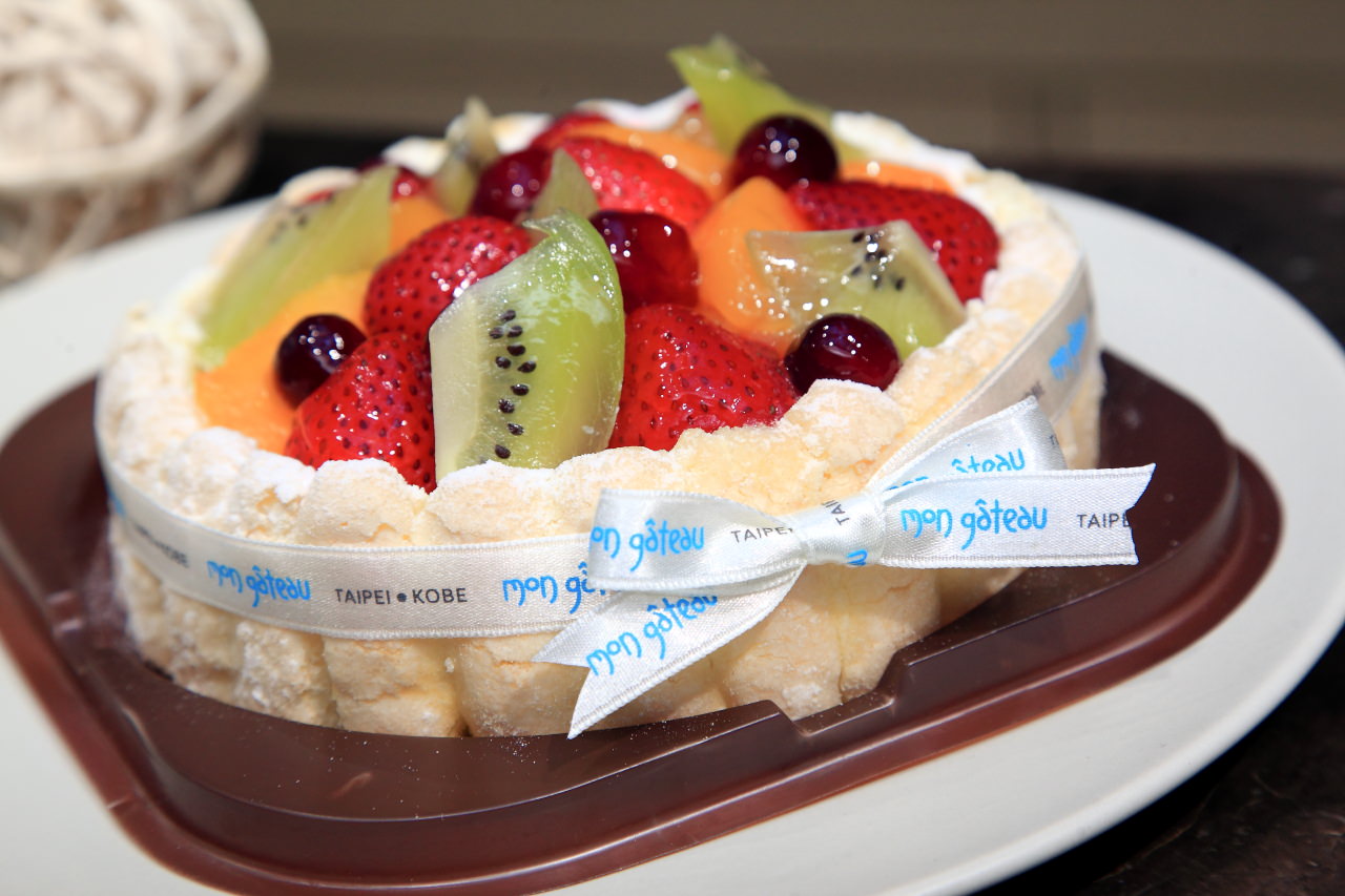 鬆軟綿密的海綿蛋糕體,加上日本新鮮空運來的純生鮮奶油,舖上當令時節的新鮮水果塊,外圍再用手指餅乾圍邊,有著滿滿香甜又幸福的甜點氛圍
