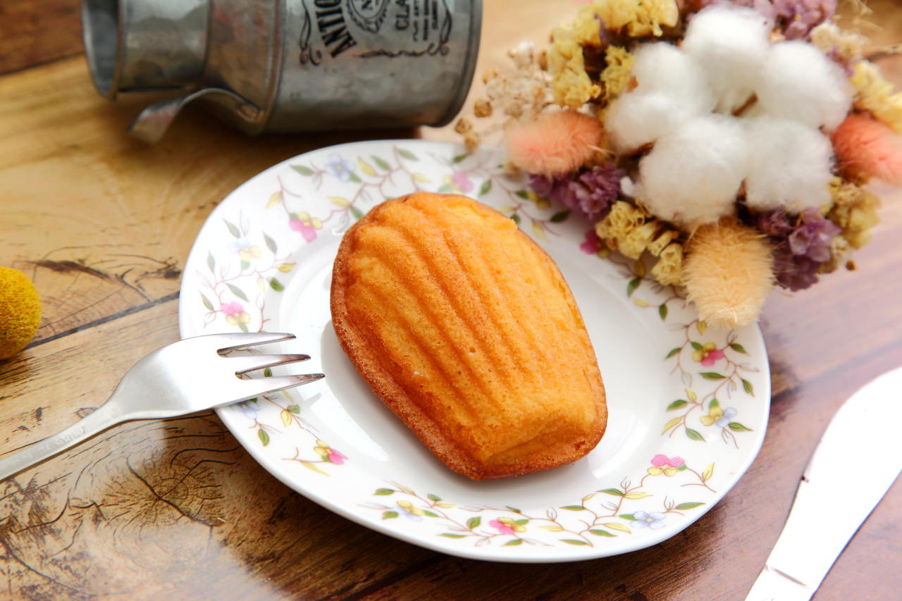 法國最俱傳統代表蛋糕Madeleines,將熱那亞蛋糕麵糊注入貝殼形狀的烤模上,並且在麵糊裡加入少許檸檬粉,濃郁的蛋糕香味還飄著微微的檸檬清香呢