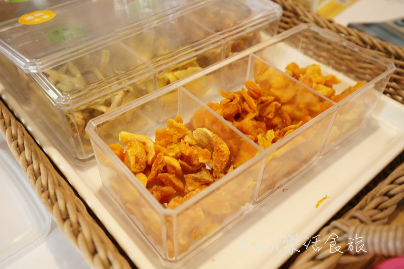 芒果乾中也有分甜與不甜,這簡直就是看電視最佳的零嘴,我們就這樣拿著牙籤細細的品嚐~哈!!說穿了就是愛吃鬼Kiwi覺得真的好好吃~