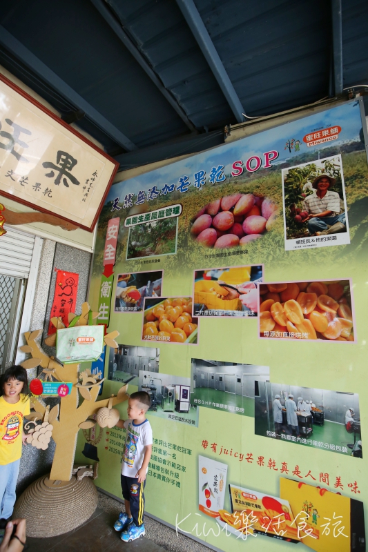 我們一行人也來到了蜜旺果製作芒果乾的區域內參觀,賴永坤(賴班長)是台大畢業,不過因為看到家鄉的芒果盛產滯銷要整箱倒掉,再加上要照顧年邁父母,因此回來經營果園,投入芒果乾市場。
