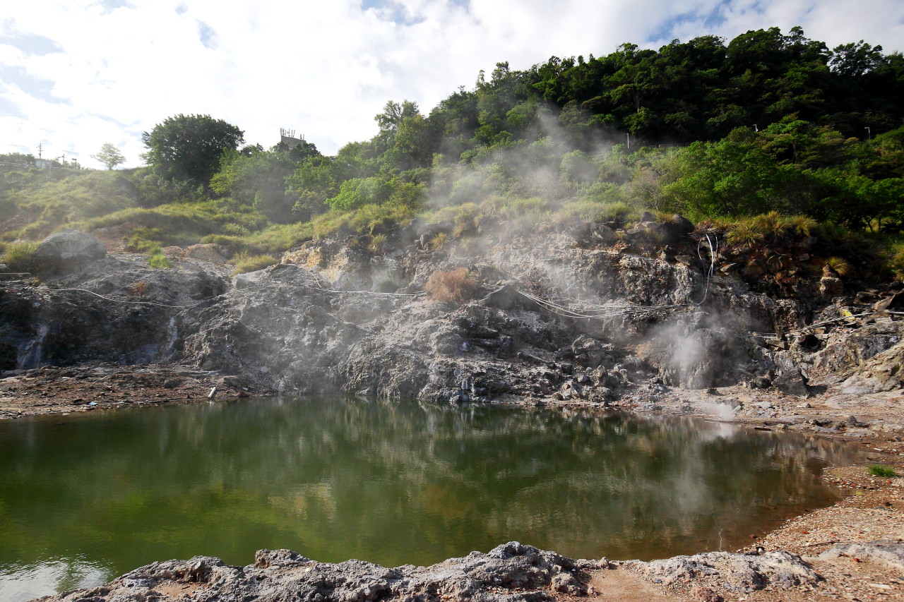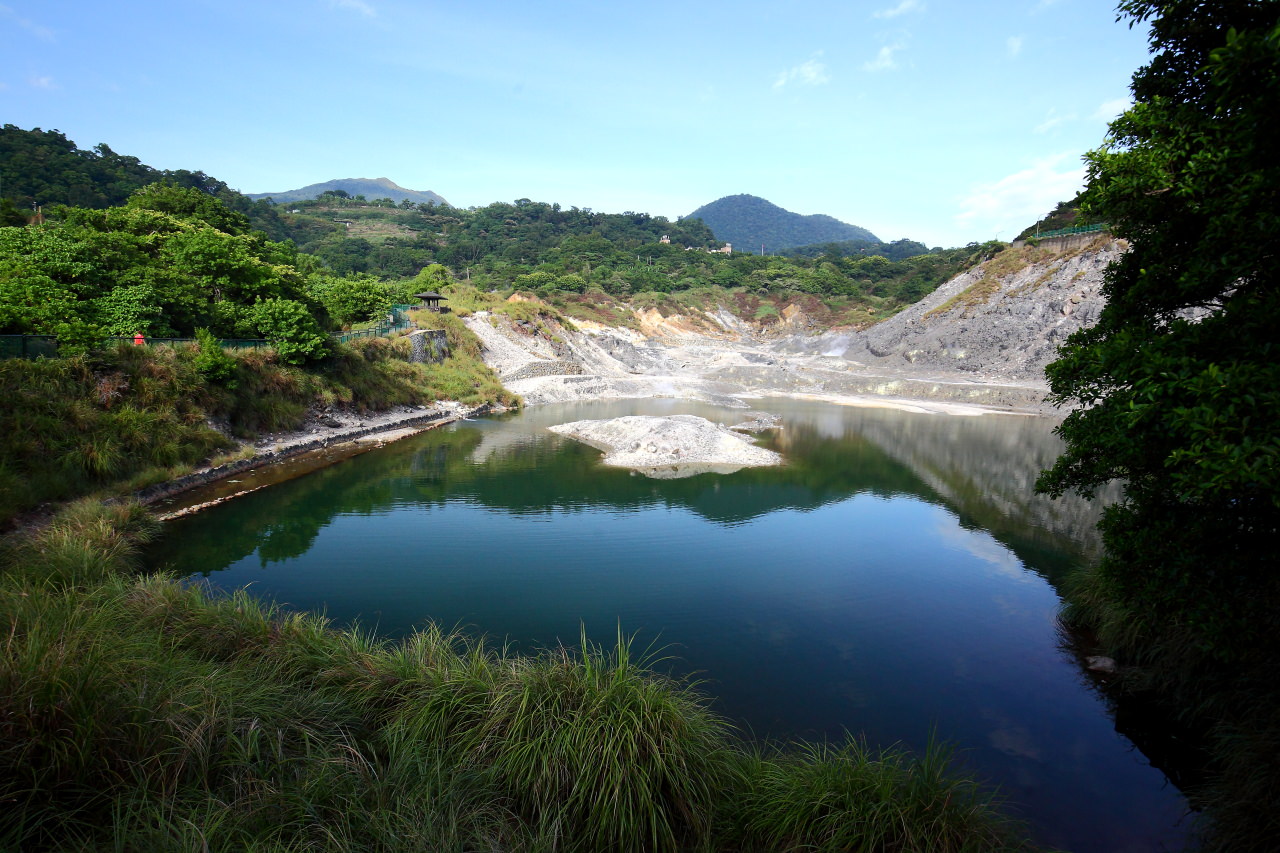 硫磺谷特別景觀區,市政府特別在這裡闢建觀景平台及步道,眼前湖光山色,綠茵環繞,遠方還可見到溫泉露頭飄起陣陣白煙