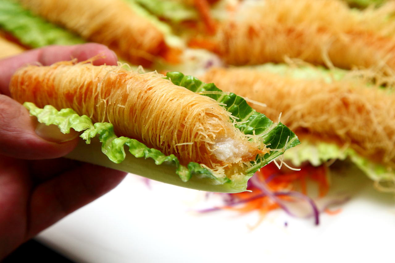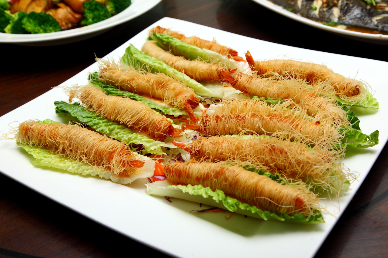 川湯最自豪的手路菜之一,用麵線綑上嚴選新鮮大明蝦就下鍋油炸,再用擠了美乃滋的蘿蔓生菜盛裝