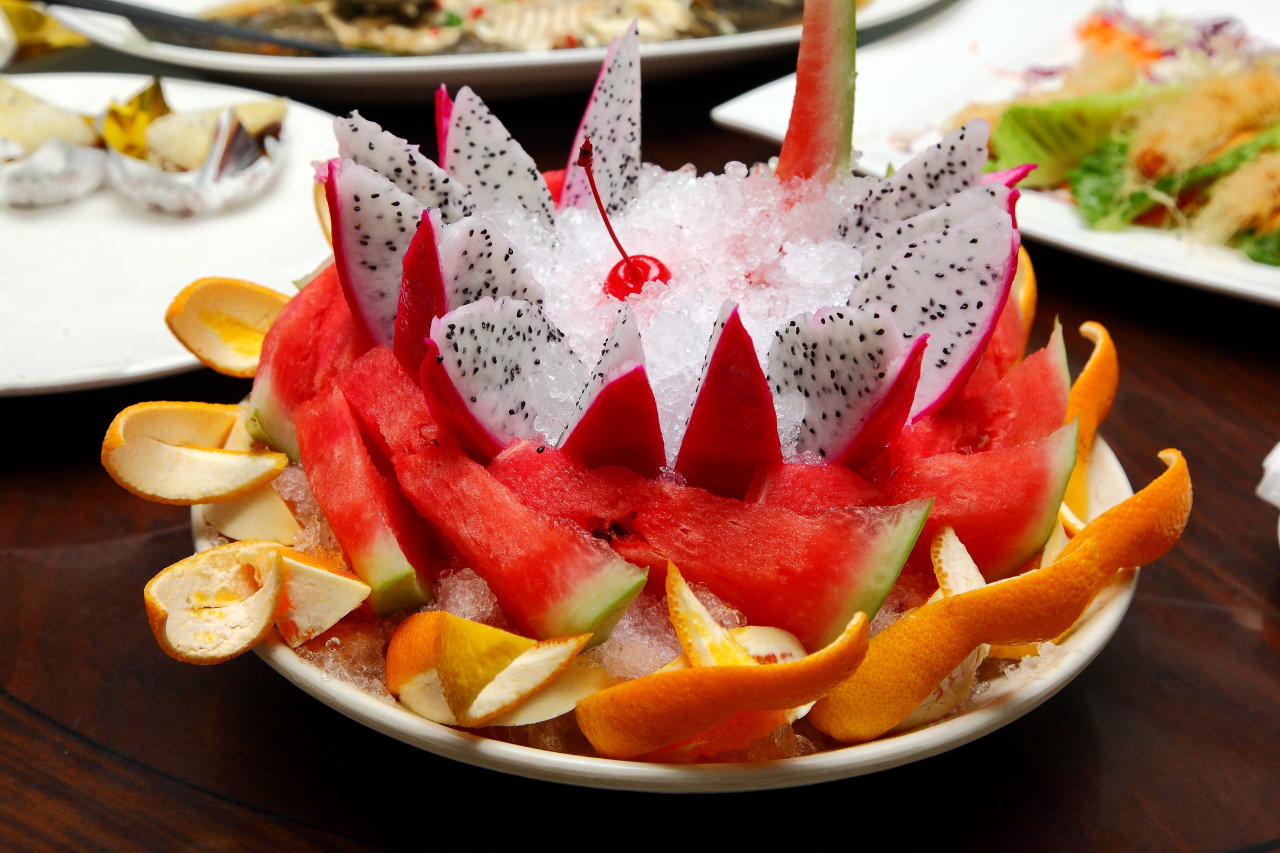 川湯跟一般溫泉美食餐廳不同的是,川湯竟然有專業的吧檯,不僅可以提供現打果汁,連最後的飯後水果都能這麼華麗豪奢,一整座水果冰山耶!