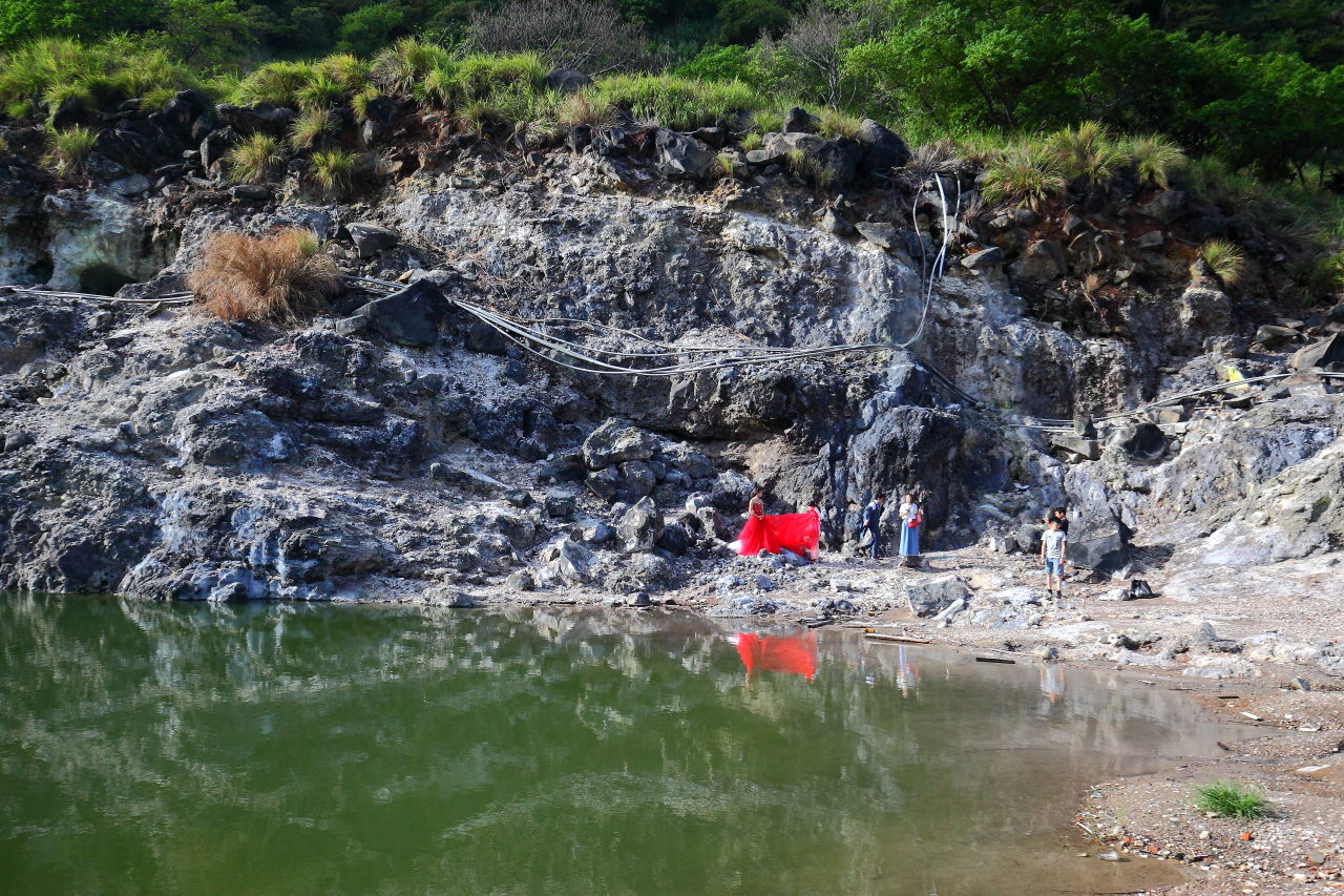 龍鳳谷,可以說是北部的婚紗聖地,崎嶇的山嵐倒映在碧綠的湖水之中,後方山菸裊裊,正巧形成新人們最夢幻的拍照背景!