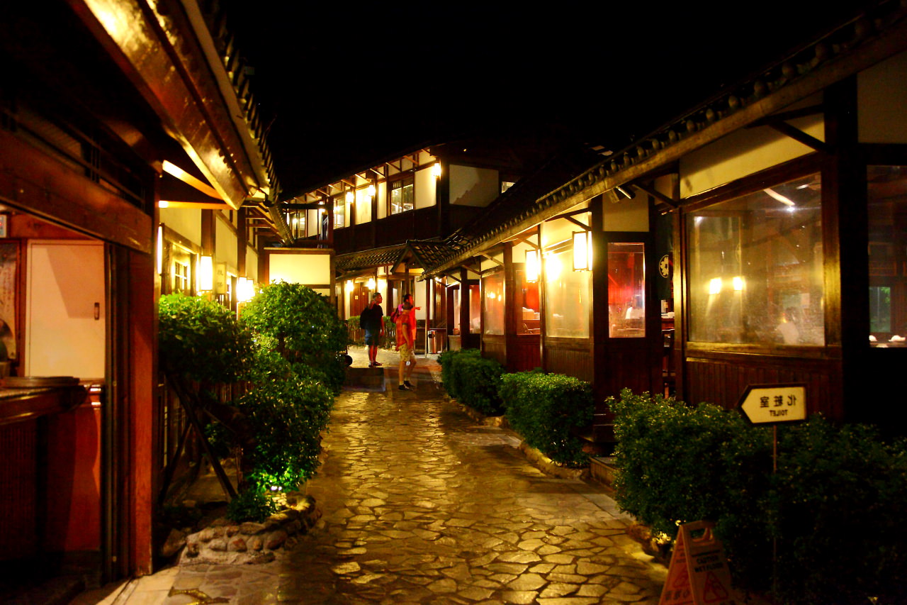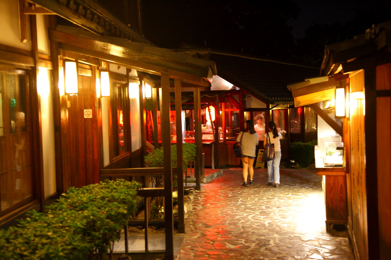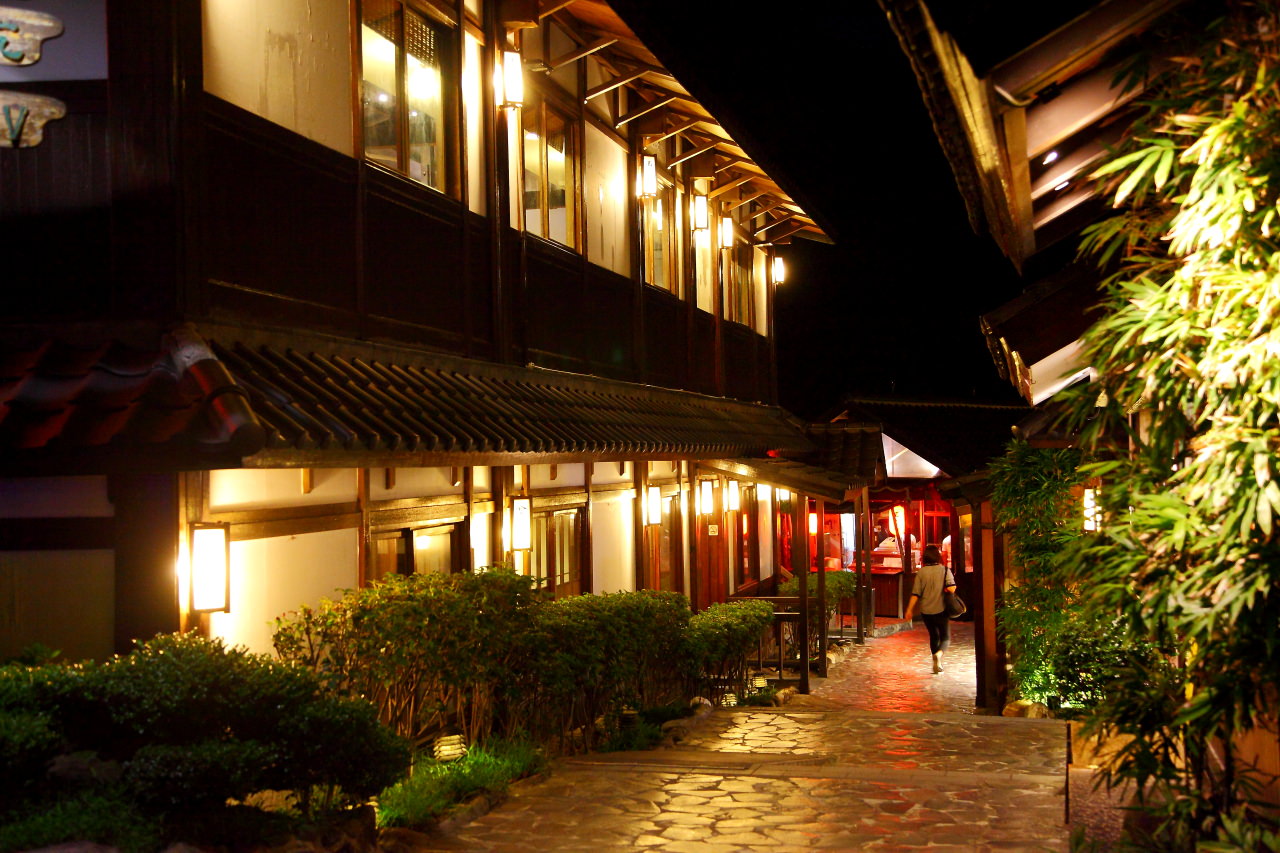川湯溫泉全區皆是以日本京都為設計背景,不管是白天晚上,走在川湯溫泉的街道上,彷佛就是置身在京都一般,純日式的街道造景,小巷、木造房舍、樹木植紮、石板小路,完成度之高,將川湯溫泉打造有如日式古樸泡湯的悠閒氛圍