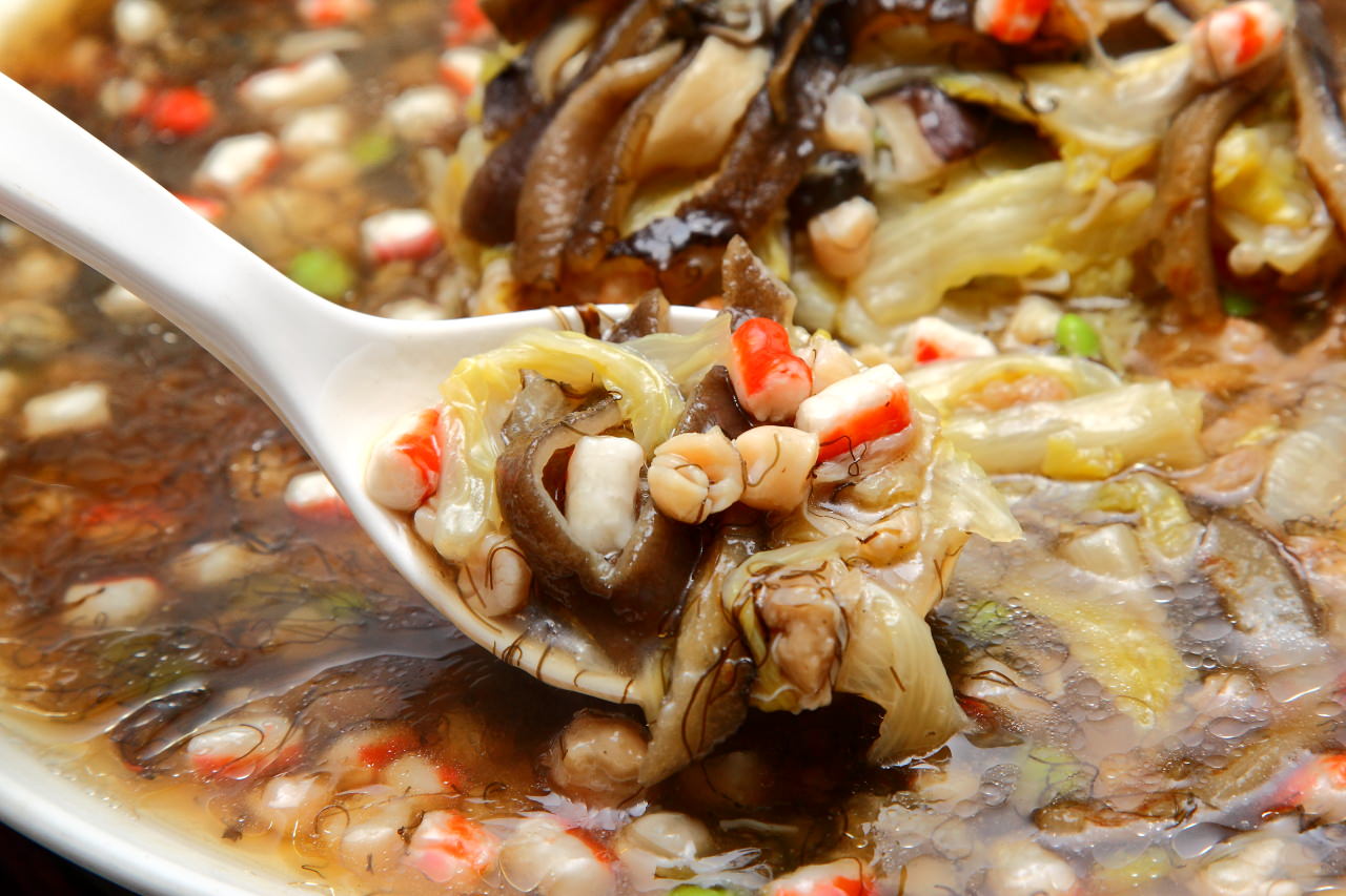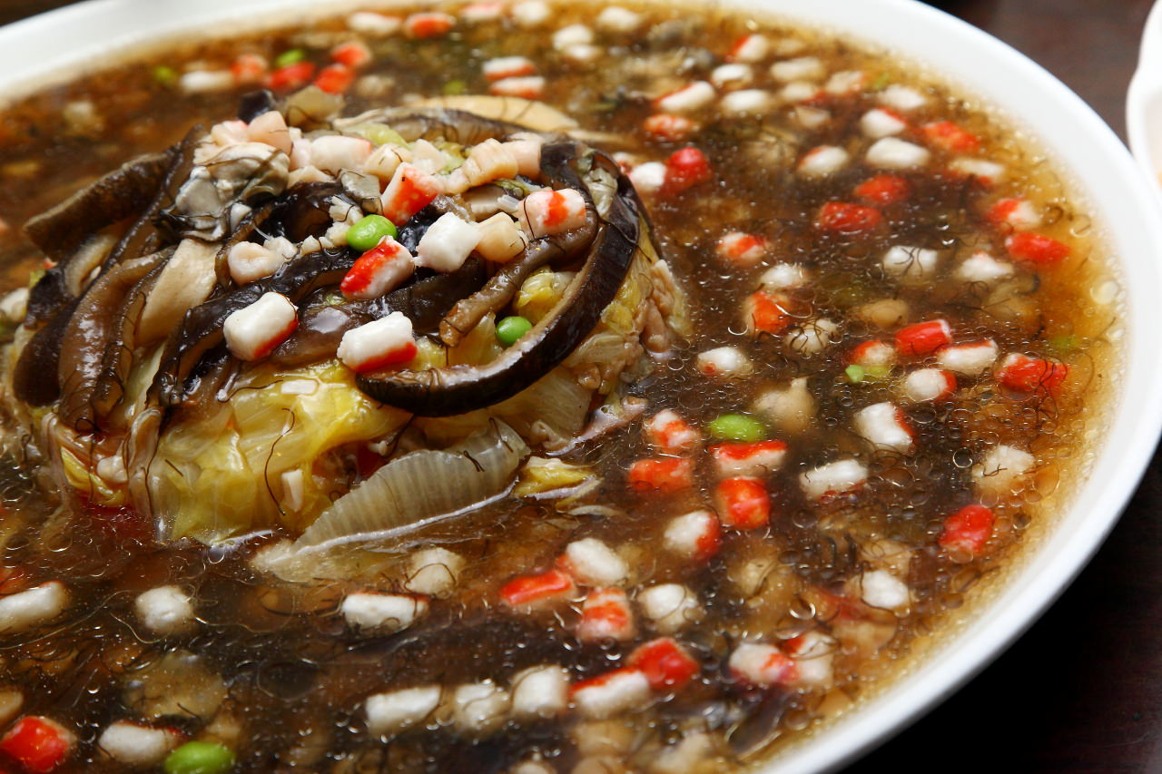 別小看這看似清爽的羹湯,裡面可是族用了八種料,小珠貝、蝦子、髮菜、香菇、白菜等,與長時間熬煮的高湯一起燉煮