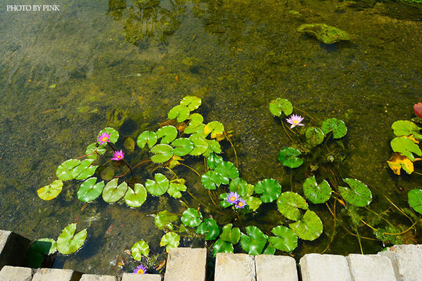 池畔上還種植了蓮花呢~