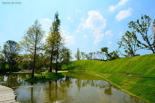 就算是天氣非常熱,看到一片綠林、水池的呈現,就清涼了不少