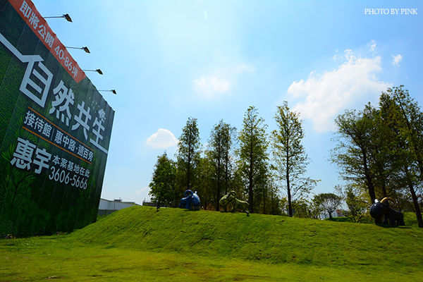最外圍擁有大草皮以及植栽,大大的招牌顯示著惠宇「自然共生」的理念