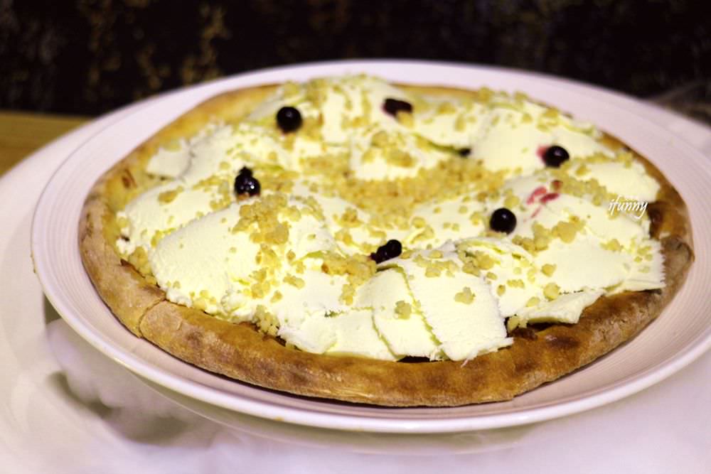 接著第三種口味的披薩上桌了,那滿滿的開心果碎及藍莓點綴,看起來好可口呢!