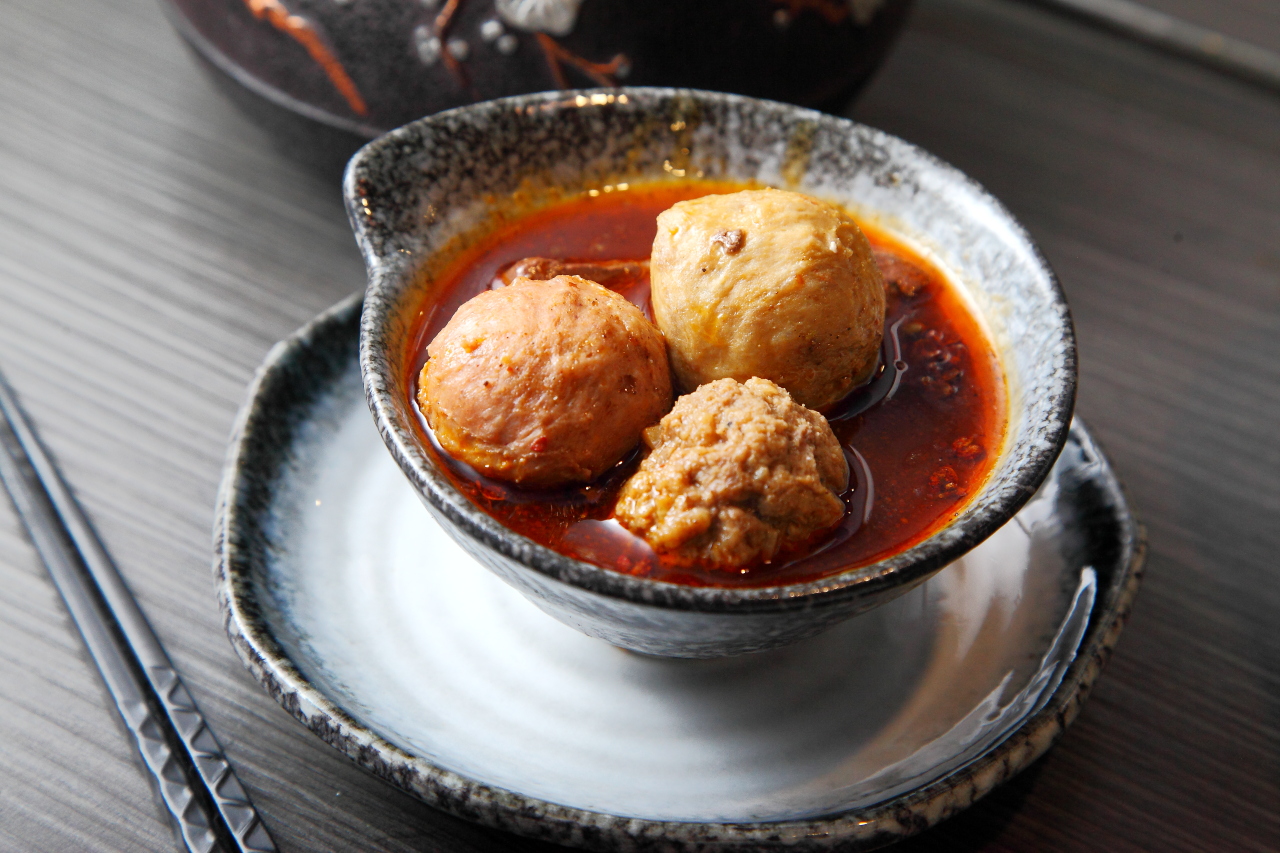 必點!主廚手作特製的綜合丸,別處絕對吃不到!牛肉丸、養生枸杞丸、養生紅麴丸三種丸子風味各不相同