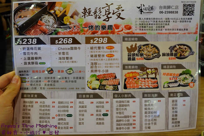 【半個鍋-個人火烤兩吃鍋物 歸仁店】MENU.