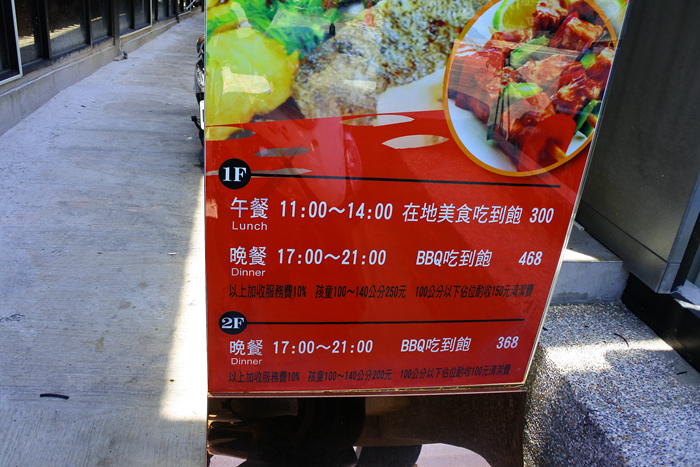 1F晚餐BBQ吃到飽:$468+10%服務費