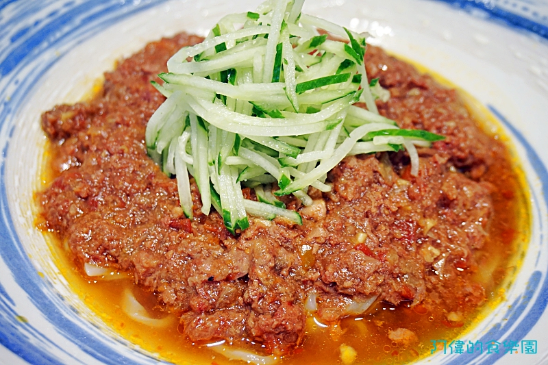 這是店裡另一個品項,牛肉乾拌麵是將牛肉切碎,加入些薑、蒜、辣椒合炒,變成像肉醬一般。