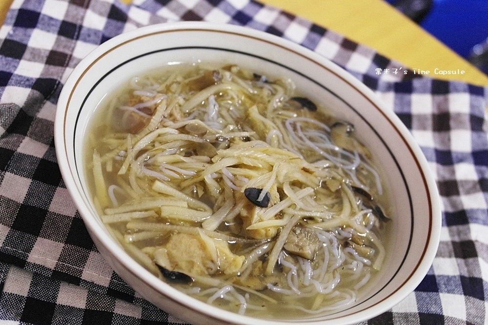 白色的蒟蒻麵夾著筍絲和湯汁一起吃,口感特別,