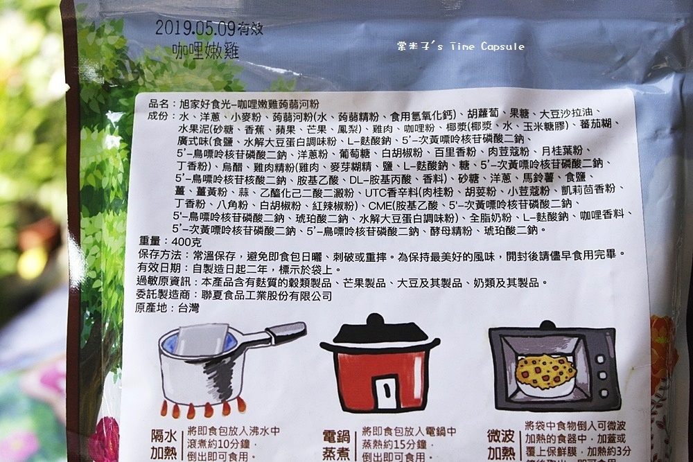 即食調理包的成分在外袋後面寫得清清楚楚,