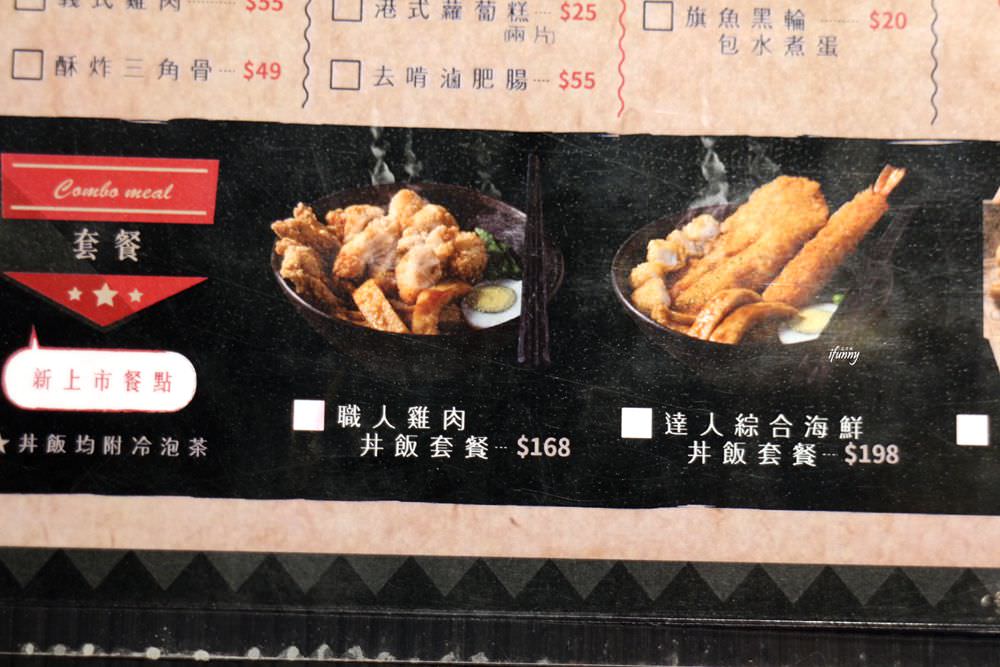 炸去啃 職人炸物能這樣持續發展分店,肯定要具有強大研發的創意,這就是他們最新的套餐及拼盤系列的海報,也是這天點餐的目標。