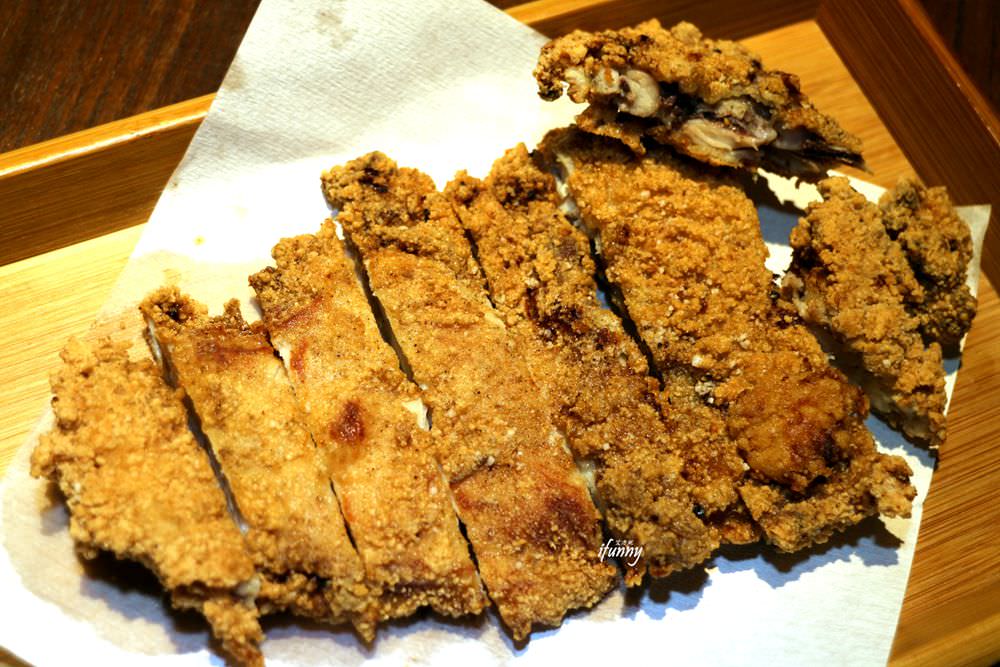 炸去啃 職人炸物是全台首創內用鹹酥雞餐廳,備有舒服的用餐空間,提供WIFI,還有飛鏢機,再加上多元化的創新炸物,成了很潮的聚會場所。這天與好友們相聚享用了分享餐,竟也嚐到了丼飯還有烏龍麵,跳脫台式鹹酥雞的外帶模式,幾乎就是餐酒館的規模。