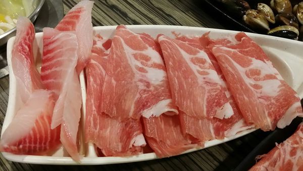 肉品+海鮮拼鍋(魚片半份+梅花豬) 280元
