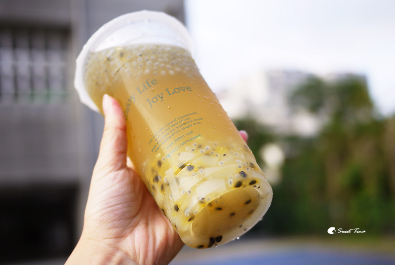百香雙嚮 - 混合了百香果、椰果、小紫蘇,裡面可是滿滿的料啊,想找口感的朋友選擇這款就對了,喝完還挺有飽足感的。