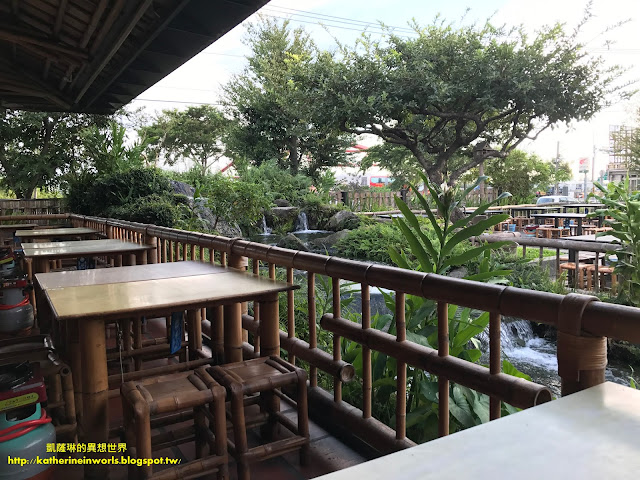 規劃【竹屋營業一、二廳】、【星光中庭夜宴區】與【竹籬風情花園區】三大特色區,讓來店客人自行選取用餐區,每個區域所欣賞到的景色都不盡然相同。而凱薩琳與友人選擇【竹籬風情花園區】,因可以直接觀賞【星光中庭夜宴區】太陽西下的時刻及傾聽小橋流水聲,美不勝收。