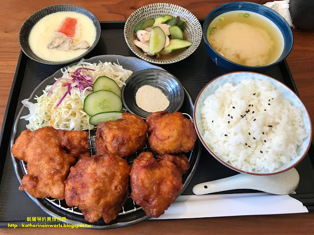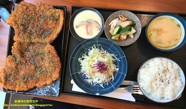有夠撐,簡直快撐破肚皮,有一半的豬排是外帶回家,當晚餐配菜。上菜時,驚訝到嘴巴合不攏,凱薩琳爸媽說,一看到就整個飽了,很特別的體驗。除了大豬排外,凱薩琳也推薦唐揚雞定食或照燒烤雞腿排,店家在雞肉烹調過程中,處置非常合宜,兩道雞肉吃起來都非常鮮嫩多汁。歡迎來到凱薩琳的家鄉_台南,品嘗這獨特美食。