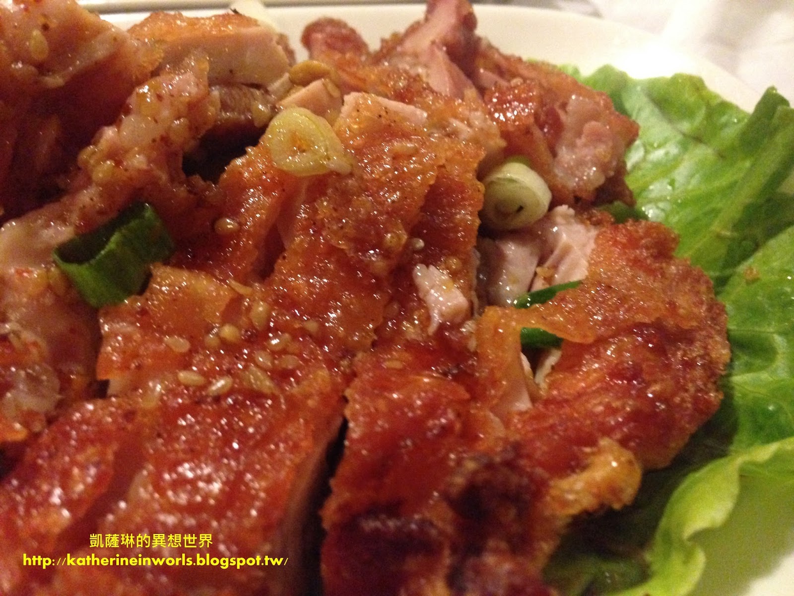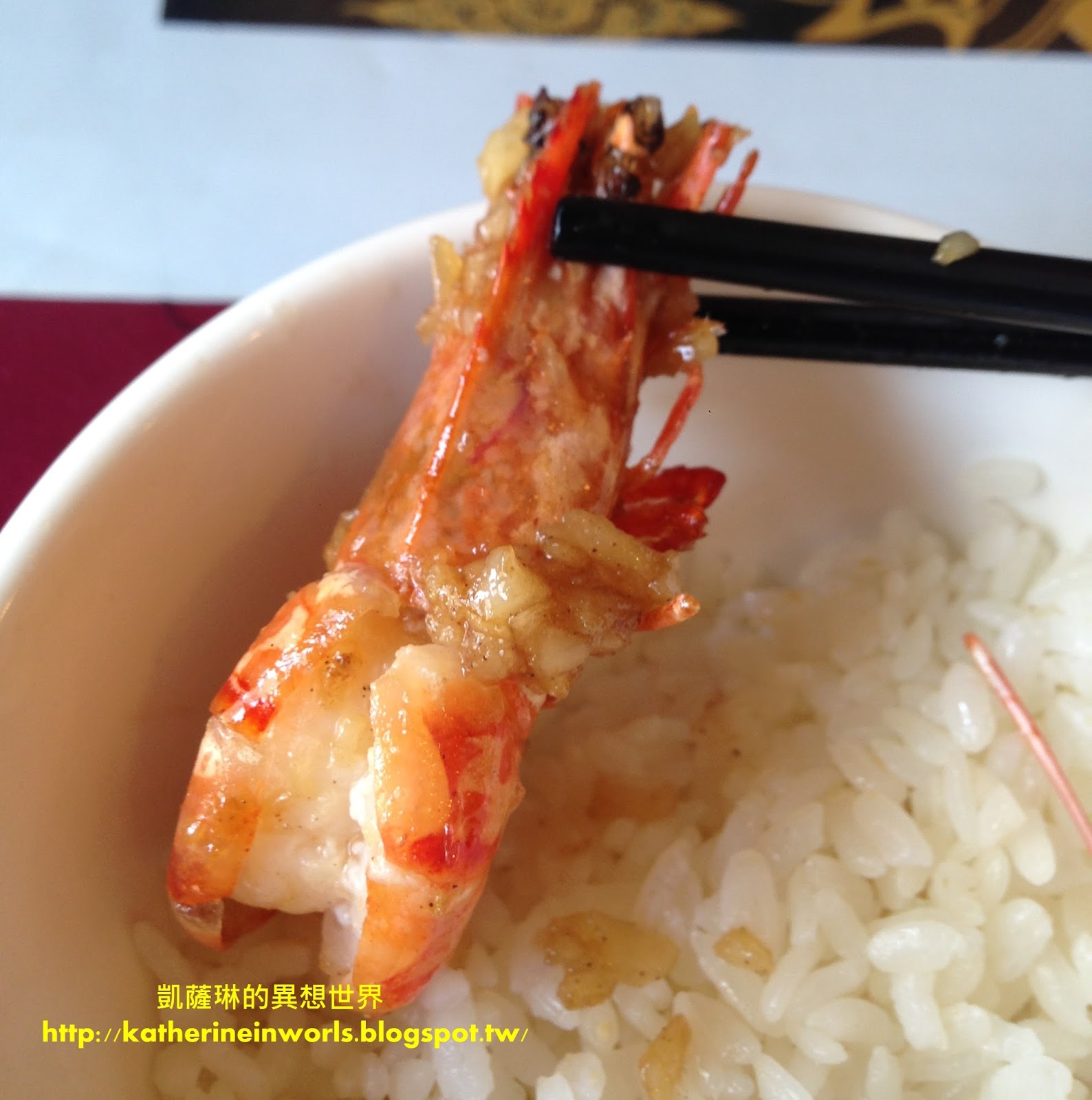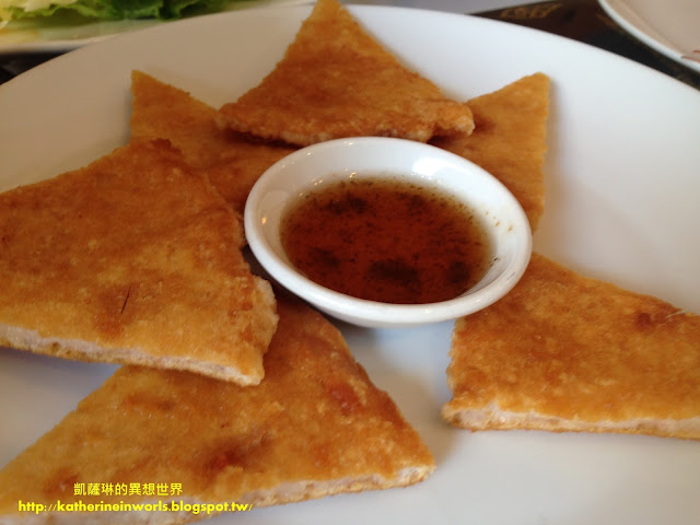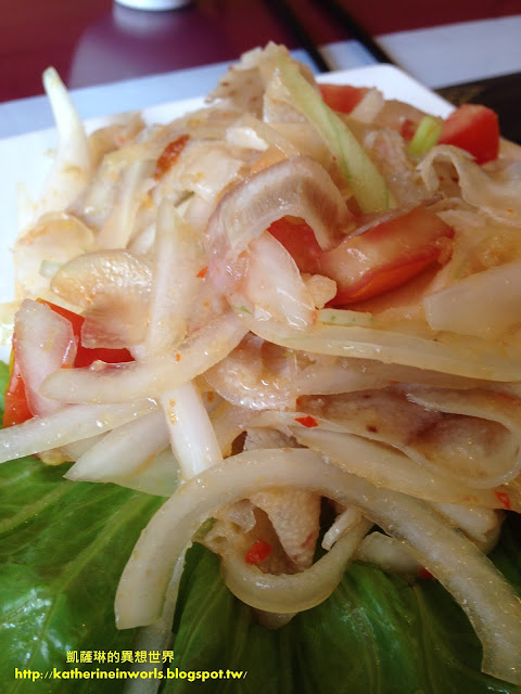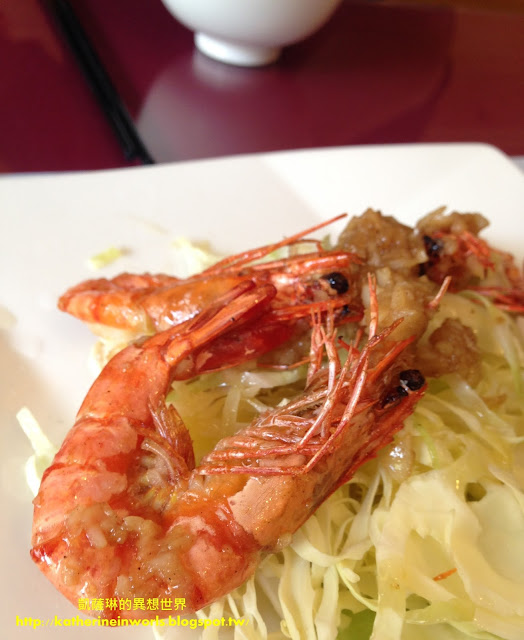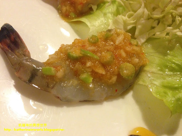 涼拌生蝦適合敢吃生食的琳友們來品嘗,搭配廚師調配的酸甜醬,冰冰涼涼的,咬下去新鮮且脆口,但是凱薩琳和阿爸都不太敢吃生食,所以各吃一尾,就被我們放在旁邊了......XXD