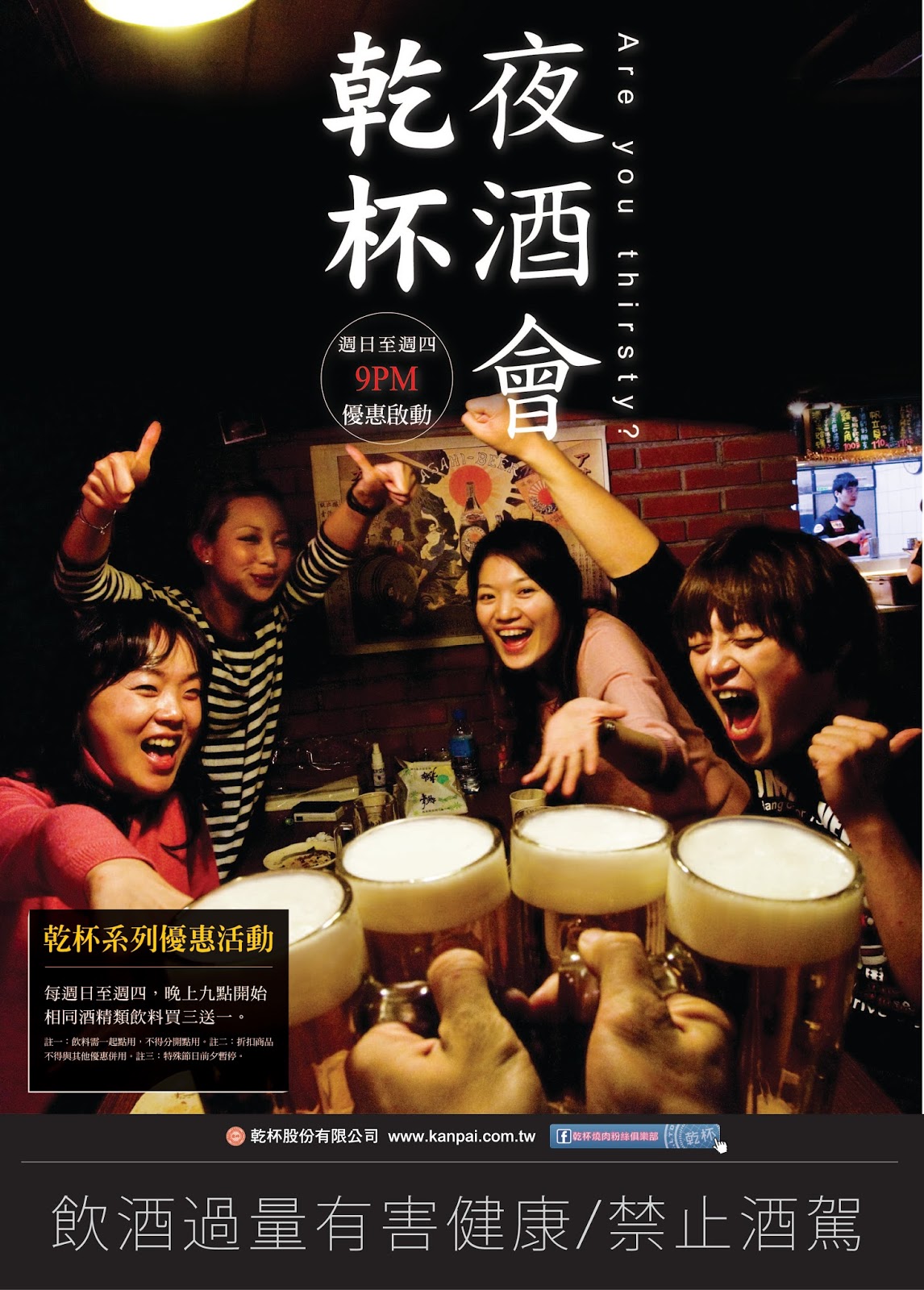 周一至周日,20:00,舉杯乾杯 (不限飲料或啤酒),免費再送一杯:舉杯乾杯這活動,清脆的玻璃杯的「敲」撞聲,讓整場HIGH到最高點,因為店員會事先詢問,要不要說說話,營造出三五好友一起用餐的氛圍,熱鬧不已 !!!