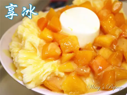 潔白又細的刨冰上面上面直接淋上糖漿份量很多,我太太還特別交代店家刨冰與糖漿放少一點。