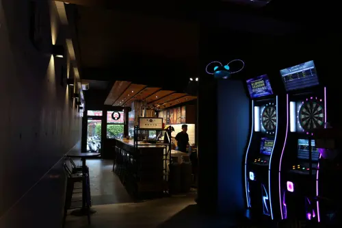 顛覆一般人印象鹹酥雞也可以內用,餐廳裝潢走時尚美式餐廳風格,還有電視、射飛鏢區