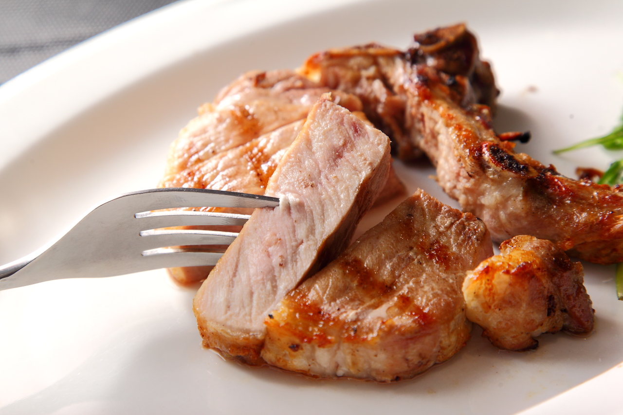 伊比利豬排經過窯烤表面烤得金黃噴香,豐富的油脂不斷的往外冒!