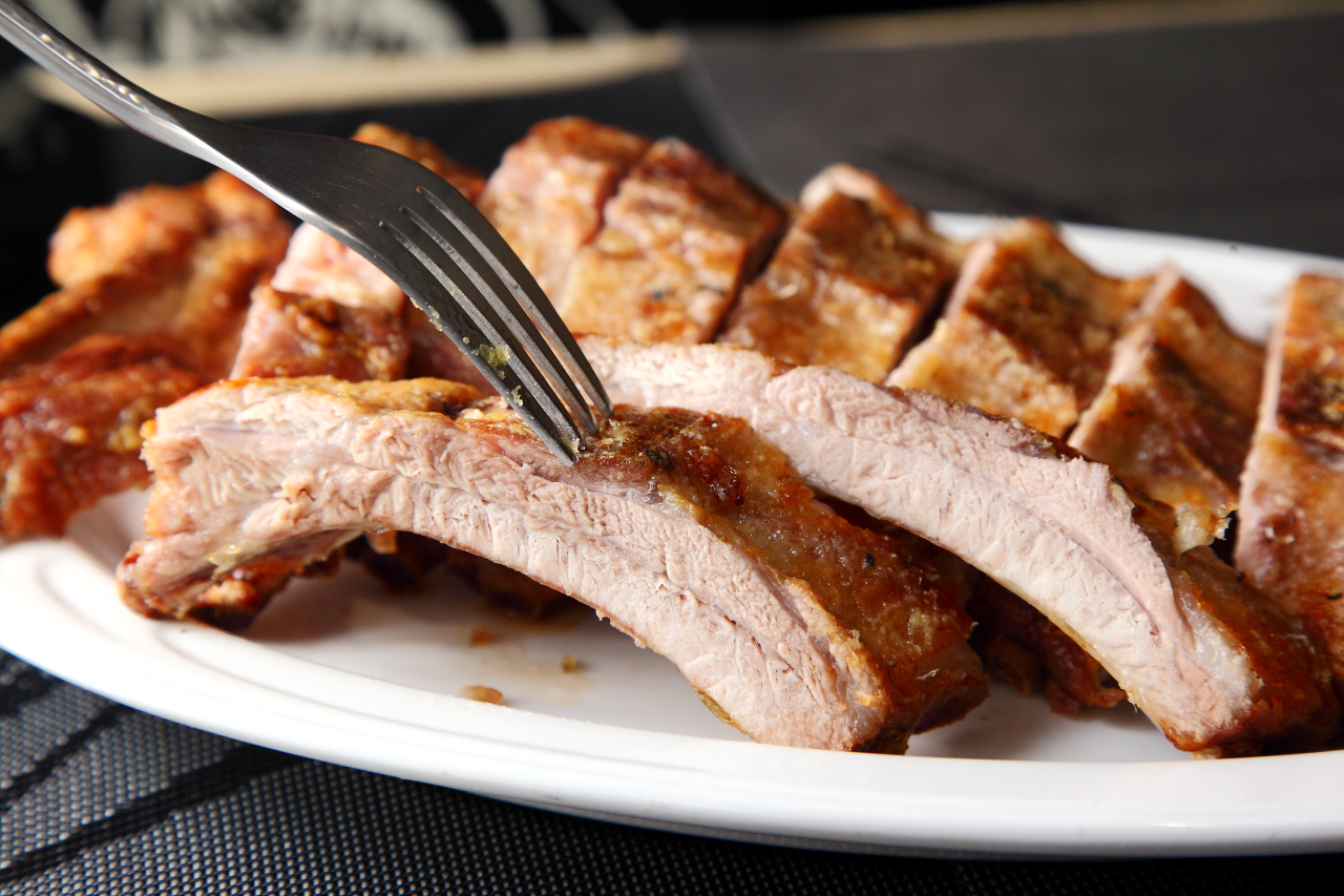 頂級豬肋排只撒海鹽燒烤,烤出來的豬肋排肉香四溢,表面黃澄澄的焦脆感實在誘人!
