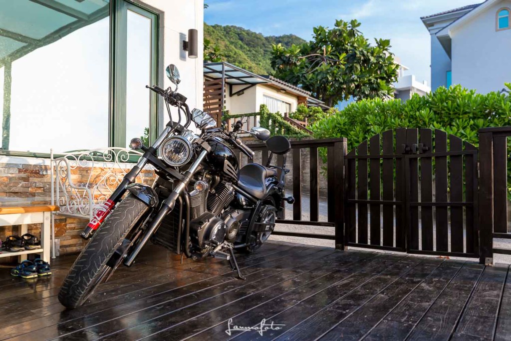 ▼進入民宿前,會先看到主人停放在旁邊的重型機車。