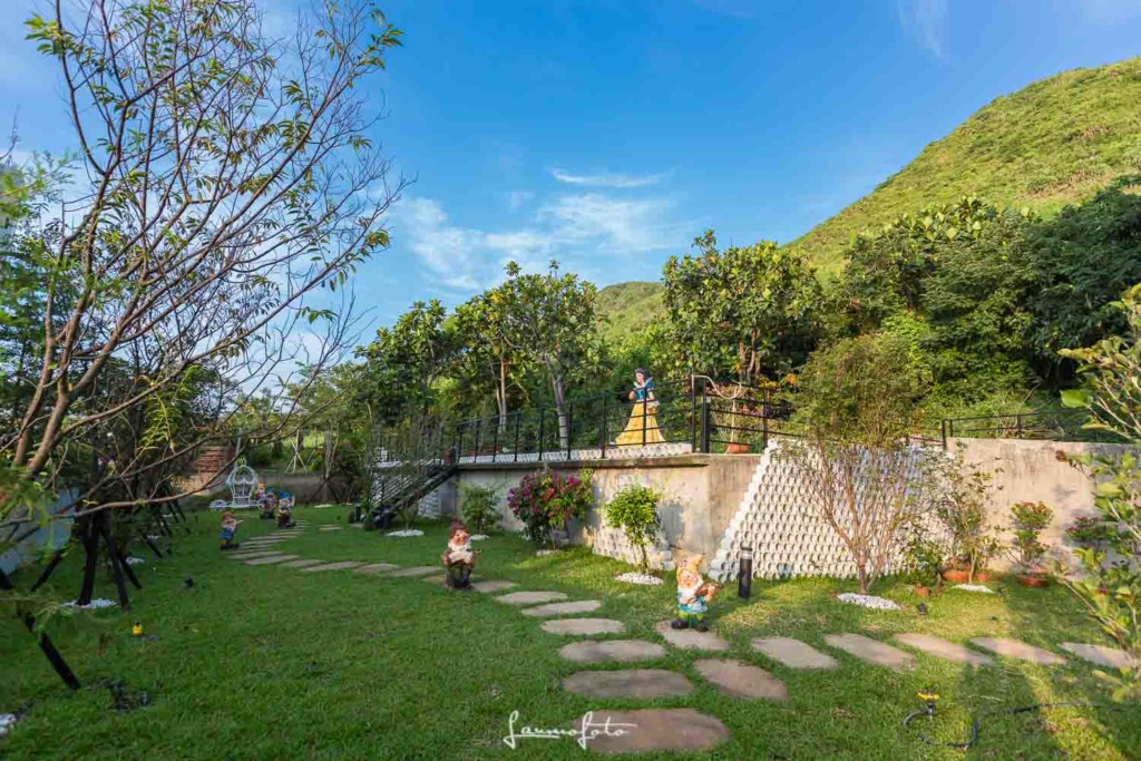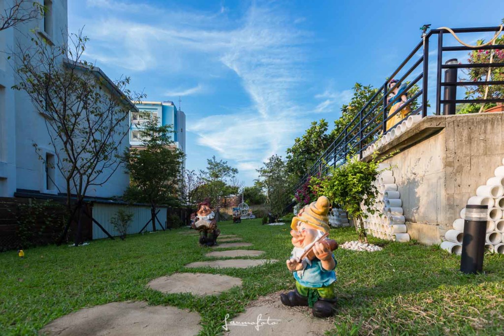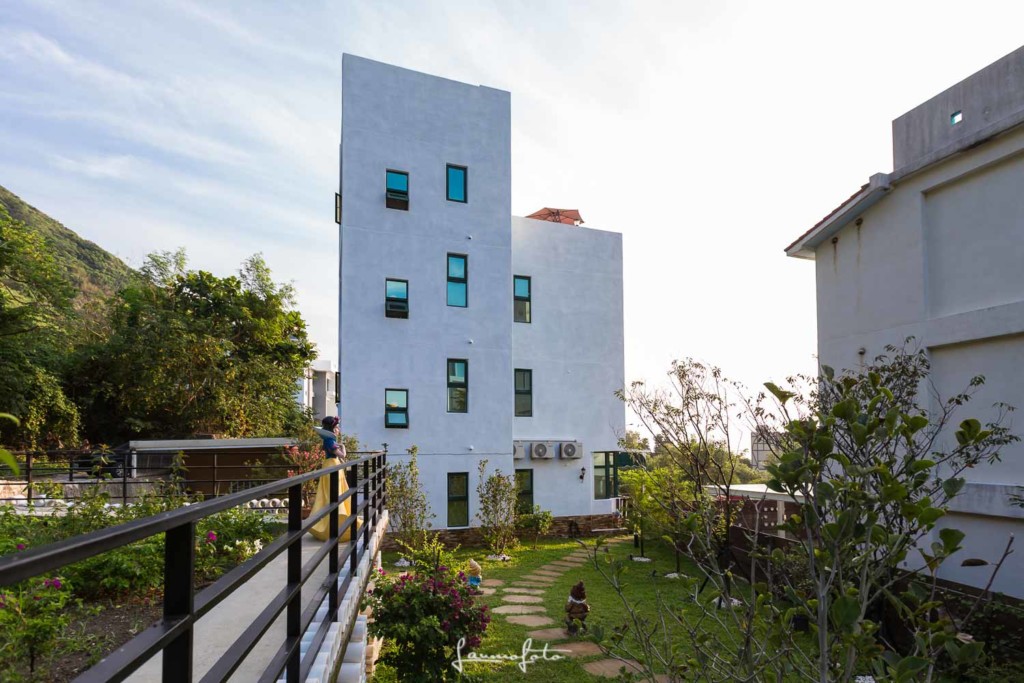 慕夏四季就在海岸線的第一排,開上斜坡有停車位,周圍有庭園造景。