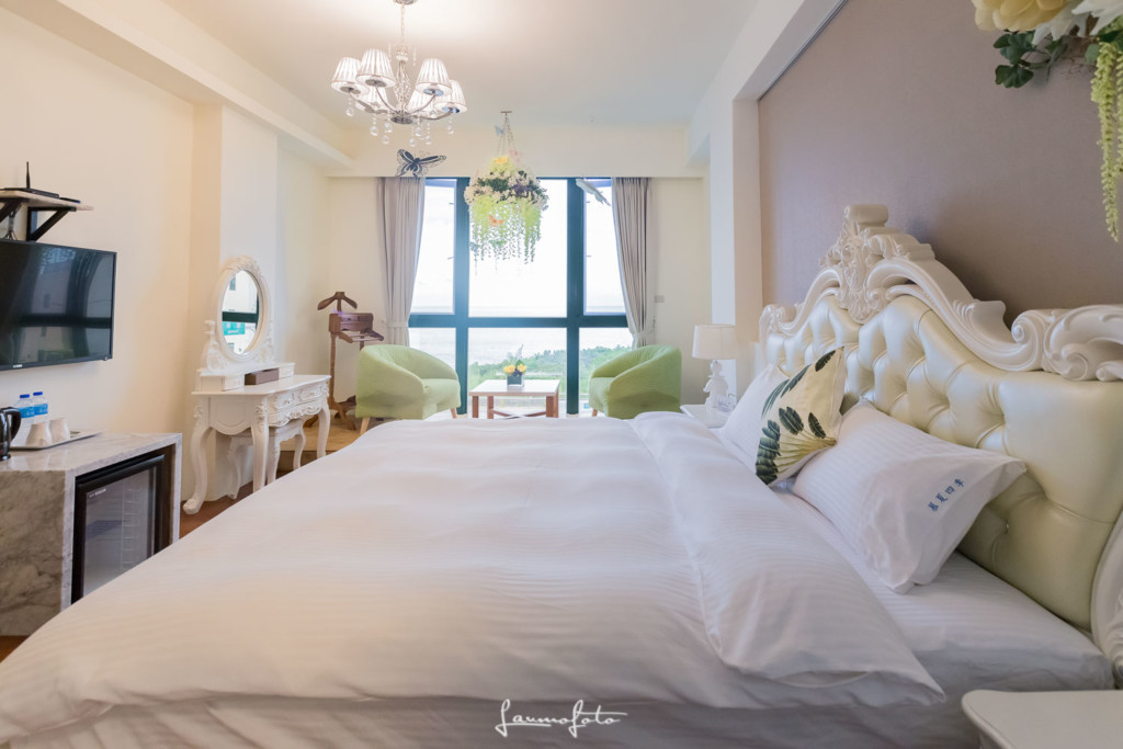 素雅白色的的歐式古典風,坐在陽台上可以賞海景 吹吹海風。