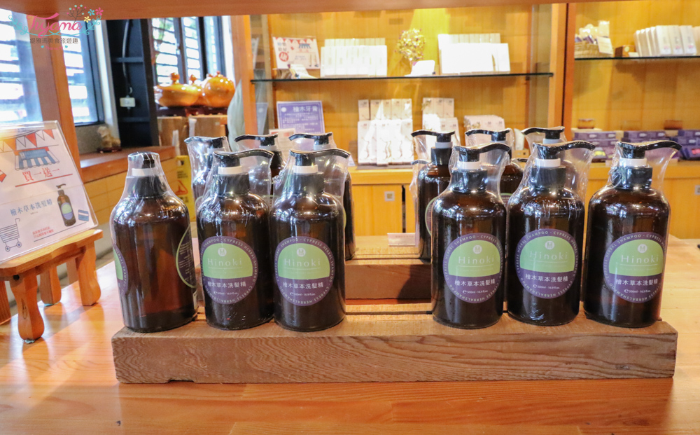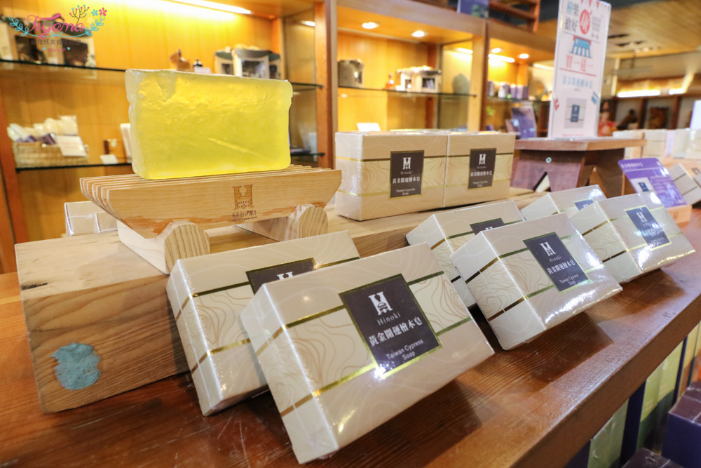 館內的檜木週邊產品,從清潔用品到精油、保養品